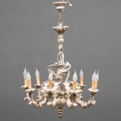 Negenlichts grijspatineerde kroonlamp in rococostijl, 104 Ø 72 cm