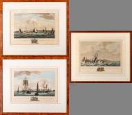 Mathias de Sallieth (1749-1791), drie ingekleurde gravures: 'De haven van Hoorn', 'De haven van Enkhuysen' en 'Staveren uit de Zuiderzee gezien', alle gesigneerd in de druk, laatste kwart 18e eeuw -gebruind, vouwlijnen-