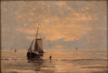 Toegeschreven aan Albert Jurardus van Prooijen (1834-1898), visbom op het strand, olieverf op doek, niet gesigneerd, 23 x 34,5 cm