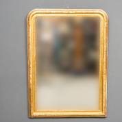 Schouwspiegel in goudkleurige lijst met parelrand en bladmotieven -weer en slijtage spiegellaag-, 153 x 113 cm