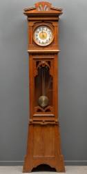 Eiken staand horloge met zilver- en goudkleurige wijzerplaat, adres: Junghans, slagwerk op gong, jugendstil, 220 x 56 x 28 cm