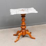 Mahonie bijzettafel met gecontourneerd marmeren blad, ingelegd met diverse steensoorten, Hollands, 19e eeuw -één poot gelijmd-, 75 x 65 x 42 cm