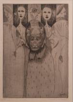 Samuel Jessurun de Mesquita (1868-1944), groteske verbeelding: diverse figuren, centraal in beeld een frontale figuur met eivormig hoofd, ets 1/10, gesigneerd en gedateerd 1917, 25,5 x 18,5 cm