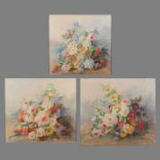 Auguste Graux (1831-1889), drie decoratiestukken: twee bloemenmanden, en een zomerhoed met bloemen, olieverf op doek, één gesigneerd en gedateerd 1872 -craquelé en enkele krassen-