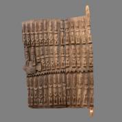 Gesneden houten graandeurtje versierd met voorouderfiguren en slot, Dogon, 78 x 54 x 5 cm