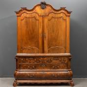 Kabinet met noten bovenkast en wortelnoten onderkast, Louis Quinze -stukje profiel los, maar aanwezig-, 226 x 165 x 64 cm