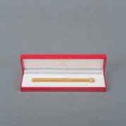 Verguld metalen balpen met geribd motief, genummerd 014481, uitvoering Les must de Cartier, Parijs -deukje aan onderzijde-, in originele foedraal, 18 x 5 x 2 cm
