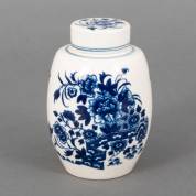 Aardewerk theebus met blauw-wit floraal decor, gemerkt, Worcester, Engeland, tweede helft 18e eeuw, 13 x Ø 8,5 cm