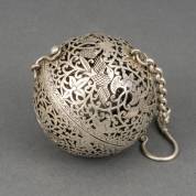 Zilverkleurige pomander met rijk opengewerkt decor, Ø 5,5 cm