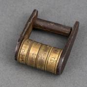 IJzeren en messing hangslot met lettercombinatie, begin 20e eeuw, code L U I S, 2,25 x 3,25 x 1,25 cm