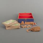 Lottospel met houten stenen, eerste helft 20e eeuw -gebruikssporen-, 12 x 21 x 15 cm
