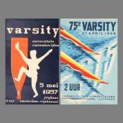 Varsity - Twee affiches: Varsity, Universiteits roeiwedstrijden Amsterdam Rijnkanaal-Jutphaas, 1957 & 1958, zeefdrukken in kleur -rafels langs de randen-, 74 x 51 cm