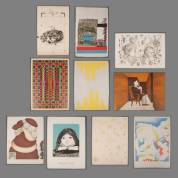 Tien diverse grafische werken op papier, waaronder: Jef Diederen, Dirkje Kuik, Carel Visser en Shinkichi Tajiri -enkele met gebruikssporen-