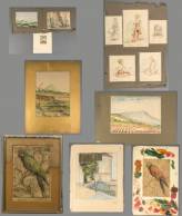 Johannes Nicolaas Jr. (1885-1943), verzameling van zijn werk, waaronder: papegaai op tak, handgekleurde ets, gesigneerd in potlood, 1930, diverse tekeningen van Indonesische bewoners, Oost-Indische inkt, potlood en waterverf, alle gesigneerd, etc., herkomst: uit zijn atelier, 23 x 32 cm