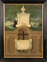 Engelse School: schilderij ter gedachtenis aan William Perry 'Who departed this life december the 26 1830, aged 65', olieverf op doek, 19e eeuw, 34 x 24,5 cm