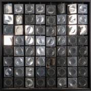 Godfried Lonis (1916-2017), 'playmultiple XIVII', hout, metaal en spiegelglas, verso gesigneerd en gedateerd 1973 -één spiegelornament verweerd-, 68 x 68 cm