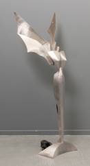 Gelaste rvs plaatwerk beeldlamp in de vorm van een engel, model Engel, ontwerp Reinhard Stubenrauch, jaren '70, 2127 x 51 x 40 cm