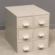 Grijsgelakt driedelig stalen ladeblokje met zes lades, uitvoering Backefield, circa 1970, 41 x 37 x 45 cm
