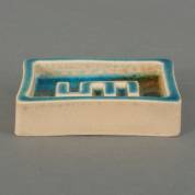 Plateel asbak met gecraqueleerd glimmend glazuur, centraal de letters LM in reliëf, uitvoering Plateelfabriek Zuid-Holland, Gouda, gemaakt voor Lippmann & Moens, welk een assurantiebedrijf was voor schepen te Rotterdam tussen 1987-1991 -twee minieme restauraties en één kleine randschilfer-, 3 x 14 x 10 cm
