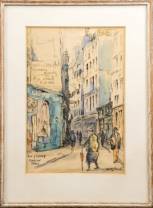 Hollandse School: 'Rue Geoffroy l'Angevin Paris', aquarel, gesigneerd Anny Staneke, 27 x 18,5 cm