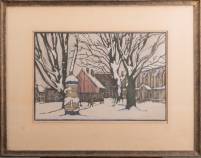 Hollandse School: 'De markt te Winterswijk', houtblokdruk, onduidelijk gesigneerd in potlood, 23 x 33,5 cm