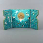 Lucie van Duyn (1933-2013), drieluikje: figuren omgeven door golven, niet gesigneerd, wel verso gestickerd -wit verfvlekje op rechterpaneel-, 25 x 25 x 6 cm