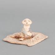 Mariet Schmidt (1935), keramiek beeld: man op deken, gemerkt -productiefout-, 11 x 13 x 15 cm