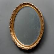 Gefacetteerde ovale spiegel in goudkleurige lijst, 58 x 48 cm