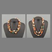 Twee colliers met diverse stenen kralen, aan onedele sluiting
