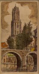 Marius Jansen (1885-1957), 'Utrecht', aquatint, gesigneerd in potlood, 8 x 14 cm