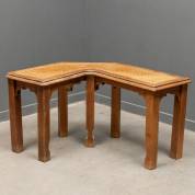 Eiken hoekbankje met rietbespanning -speling in verbindingen-, 47 cm