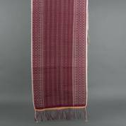 Rode katoenen schouderdoek selendang met complementair geweven geometrisch patroon, Sumatra, 190 x 55 cm
