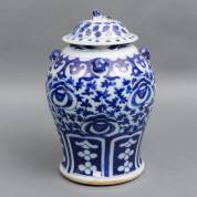 Chinees porseleinen martavaan met blauw-wit floraal decor, 19e/20e eeuw, 40 x Ø 24 cm