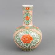 Chinees porseleinen famille verte vaas met chrysantendecor, gemerkt, 19e eeuw -defect-, 37 x Ø 24 cm