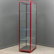 Glazen vitrine met rood metalen frame, 179 x 45 x 70 cm