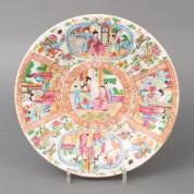 Chinees porseleinen famille rose schotel met figurendecors, Kanton, 19e eeuw -randchipje, bodembarst-, Ø 30 cm