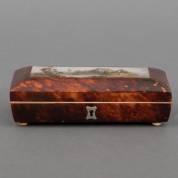 Schildpad lepeldoosje, 19e eeuw -hoekje achterzijde beschadigd, plaatje bovenop met defecten-, 5,5 x 17 x 7,5 cm
