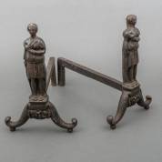 Paar gietijzeren vuurbokken, elk bekroond door een beeltenis van een klassieke schone, 33 x 37 x 21 cm