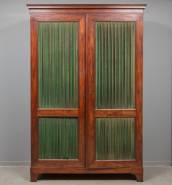 Mahonie tweedeurs boekenkast, de deuren met groene stof bespannen, 19e eeuw -defecten en gebruikssporen-, 246 x 70 x 46 cm