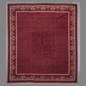 Europees handgeknoopt tapijt met bloemenrand op bordeauxrood fond, 320 x 285 cm