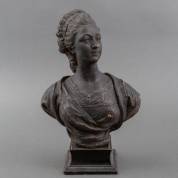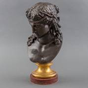 Bronzen buste: classicistische godin -kras aan achterzijde-, 43 x Ø 21 cm