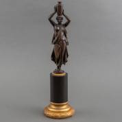 Bronzen beeldje: vrouw draagt kruik op haar hoofd, met gietersmerk: Fundicion de Atocha, Spanje, eind 19e/begin 20e eeuw, 42 x Ø 11 cm