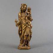 Bronzen beeldje: Madonna met Kind, met resten van verguldsel, vermoedelijk Italië, gotische stijl en mogelijk periode, 20 x 6 x 5 cm