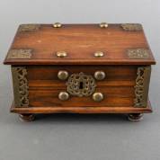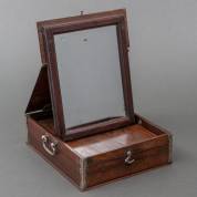 Chinees houten kistje met opklapbaar spiegeltje en zilveren beslag, vermoedelijk eerste helft 20e eeuw, 7 x 24 x 19 cm