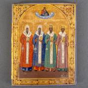 Russische icoon: De vier Heilige Patriarchen van Moskou, tempera op naaldhout, 18 x 4 x 2 cm