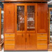 Bubingahouten hoog wandkabinet met in het midden twee beglaasde deuren, het geheel met ebbenhouten en aluminium ornamenten, serie Decoforma, uitvoering Schuitema -gebruikssporen-