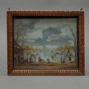 Perspectiefkastje met twee beschilderde glasplaatjes: ijspret, gemonogrammeerd DJ, 18e/19e eeuw, 4,5 x 29 x 24 cm