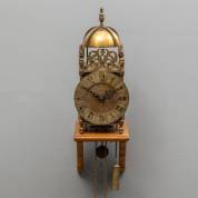 Messing lantaarnklok, de zijpanelen met gegraveerd decor: Vader Tijd en Magere Hein, adres: Rob Evens, Halstead, Engeland, tweede helft 20e eeuw, 55 x 16 x 16 cm