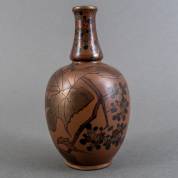 Keramiek vaas met floraal lusterdecor, uitvoering Boch Frères Keramis, circa 1910, onderzijde genummerd 400 en gemonogrammeerd B.F.K. 12, 20 x Ø10 cm