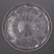 Persglazen schaal met verso paardenbloemdecor in reliëf, model Pissenlit, ontwerp en uitvoering René Lalique, 1921-1923 -gebruikssporen-, 3 x Ø 30 cm